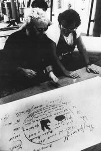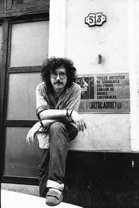 Aldo junto a la máquina donde imprimía sus carteles, foto Tito Alvares, 1968